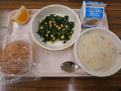 本日の給食のメニューは、メロンパン、牛乳、ポークビーンズ、切り干し大根のサラダです。今日から給食も始まりました。楽しい給食の時間ではありますが。飛沫感染防止のために、マスクを外す時間のお話しは残念ながらできません。でも、栄養満点の美味しい給食で、体の中から健康に、体力をつけて免疫力を高めていきましょう。