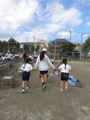 運動会進行のお手伝いや、自転車の誘導などの為、