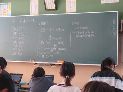 12月5日は6年生の最後の授業参観でした。 慈林小学校での授業を見れるのは最後なんだな、と思うと感慨深くなりました。 6-2の授業では『交流週間に1年生とどんな遊びをしたら良いか?』をテーマにディスカッションしていました。 色々な企画が上がり、その企画について話し合います。 どの企画に賛成かとその理由、また心配(懸念)する企画にも自分なりの見解を発表していました。 そして、心配すると言われた企画について、対策を考えて実行しようとまとめていました。 自分達で考え、討論し、結論を出す、とても素晴らしい内容でした。 交流会では1年生も楽しんでくれたら良いですね。 6-1 ネットトラブルについて 6-2 交流週間に1年生とどんな遊びをしたら良いか考える 6-3 フラッグフットボール