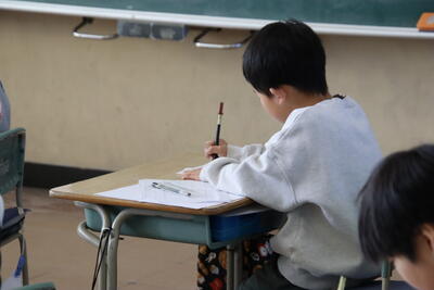 冬休みに練習してきた書きぞめの成果を出すべく、子供たちはとても集中して取り組んでいました。