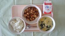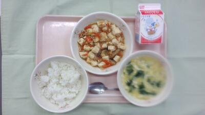 ごはん マーボーどうふ 中華風コーンスープ 牛乳