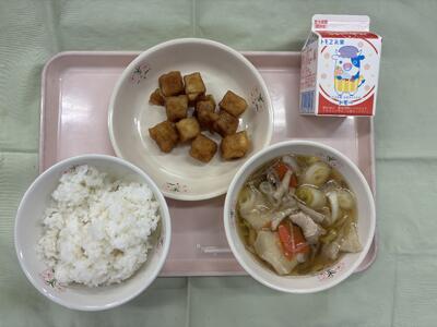 ごはん たらのゆず香揚げ せんべい汁 牛乳