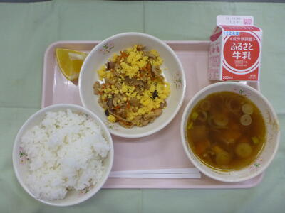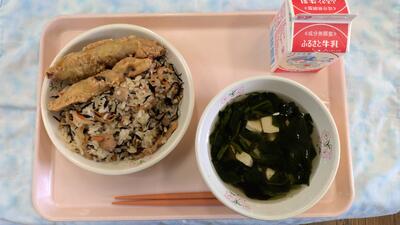 1年生にとっては、はじめてのごはんでした。盛り付けは時間をかけてゆっくりやったので、給食当番さんも大丈夫でした。おうちでもごはんを自分でよそる練習、してみてくださいね。